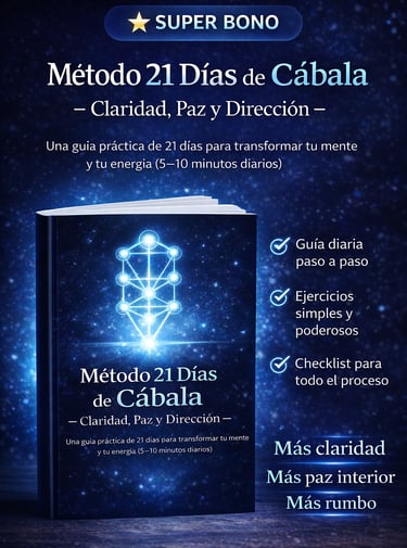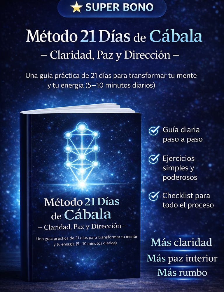 Al adquirir CÁBALA EXPLICADA hoy, recibirás TOTALMENTE GRATIS 3 regalos exclusivos… y además desbloquearás un SÚPER BONO ESPECIAL: el Método 21 Días de Cábala – Claridad, Paz y Dirección.